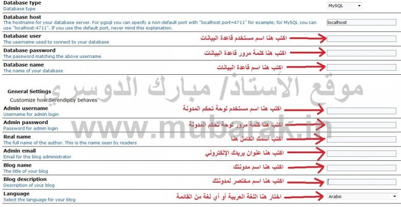 لتثبيت المدونة